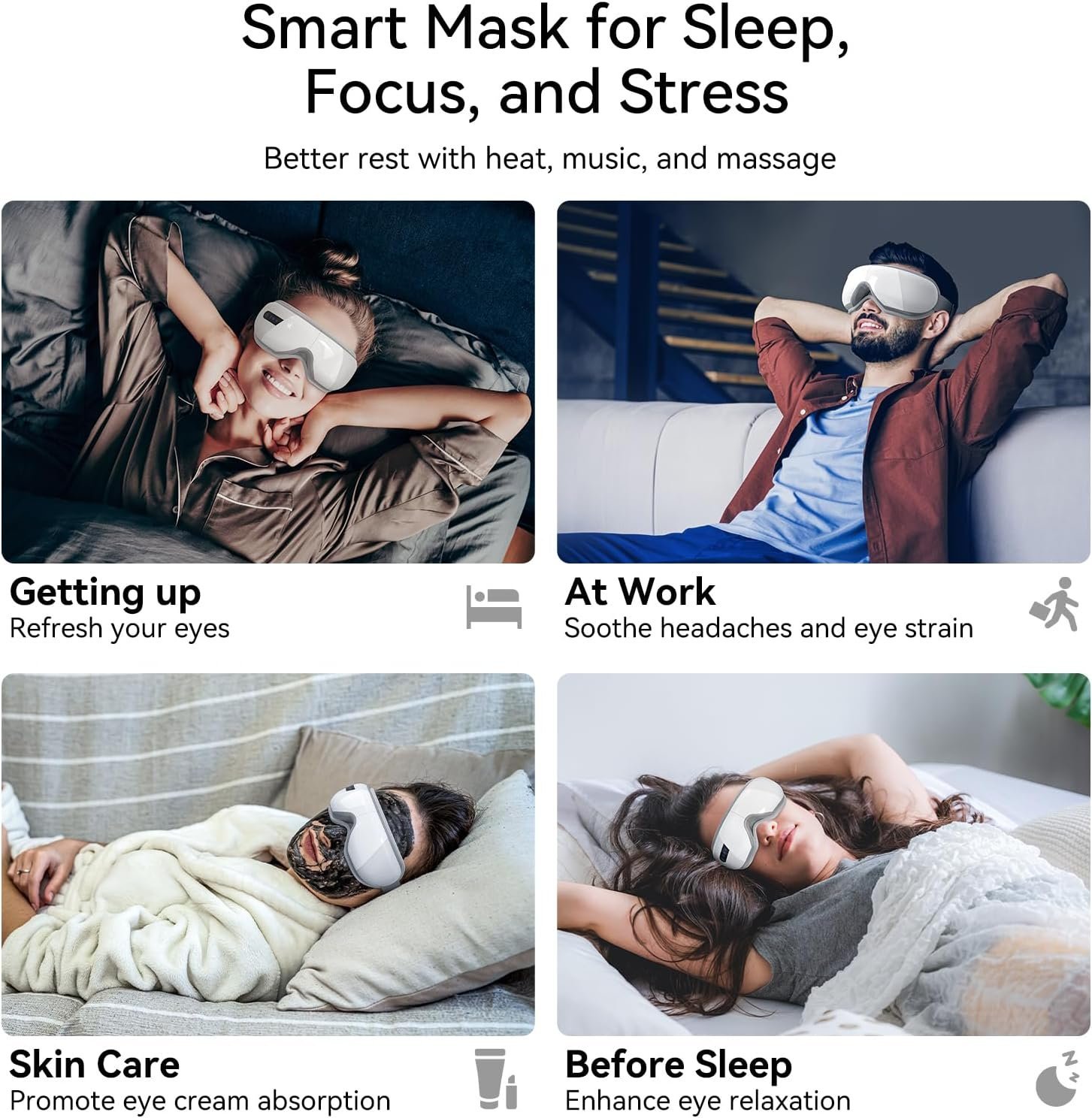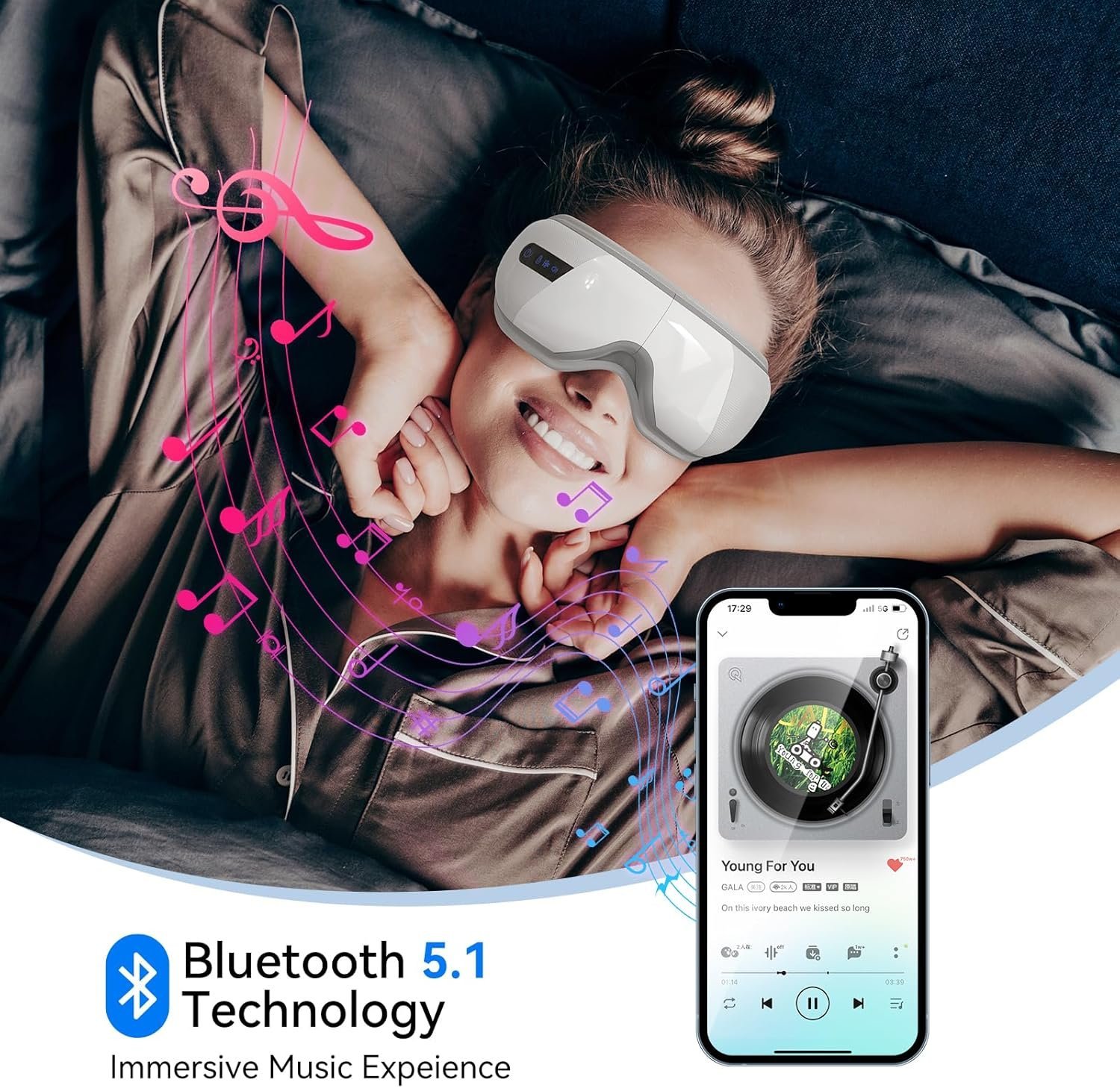 Masajeador Ocular con Calor y Masaje con Globos, Funci??n de Indicaciones por Voz con M??sica Inal??mbrica, Protector Ocular Recargable, M??scara Ocular, Regalos de Cumplea?os